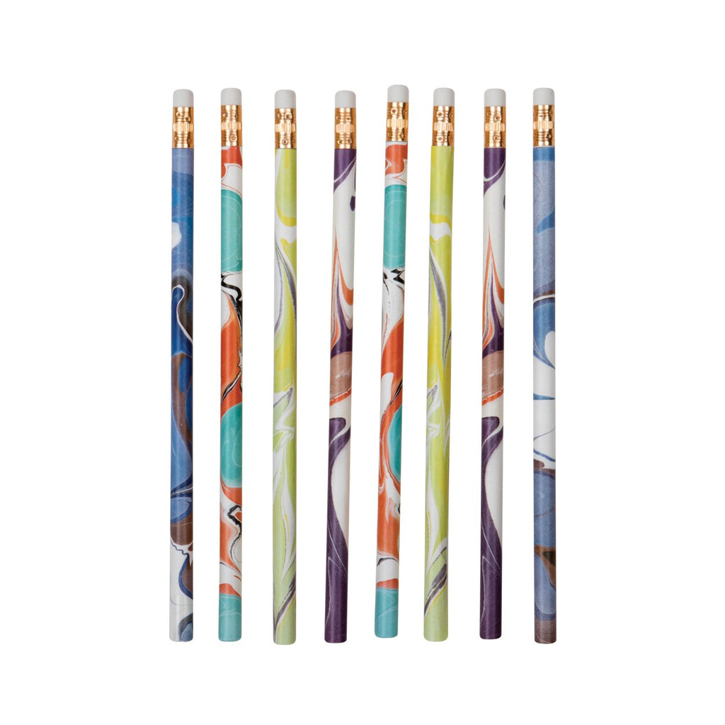 Galison’s Adrift Pencil Set consists of eight wooden pencils decorated with marble designs from artist Natalie Stopka. Perfect for everyday use, this pencil set adds beautiful visual appeal to any home or office.